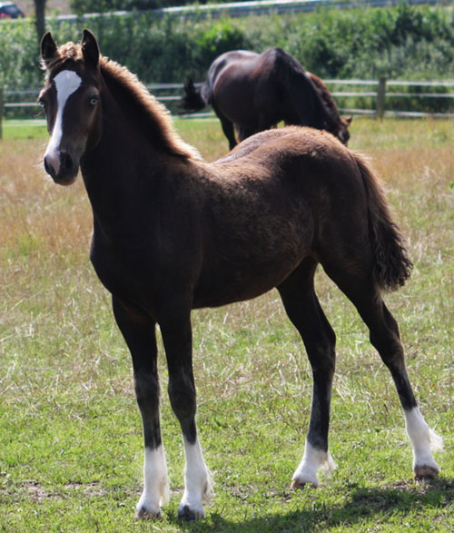 Welsh Cob Stutfohlen 29.05.2011 Schwarzbraun, 3 weiße Socken , Blesse Vater: Fronarth Morgan Mutter: Bwlchllan Black Beauty v. Ebbw Victor