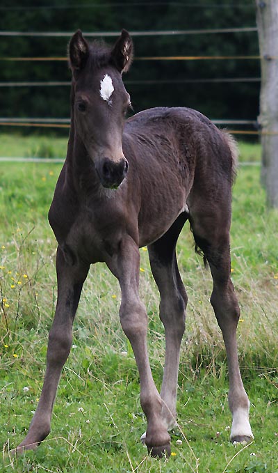 ein schickes elegantes Hengstfohlen mit toller Oberlinie und Abzeichen. Es ist das erste Fohlen dieser Stute und gut gelungen. Großrahmig und hübsches Gesicht. Wir sind gespannt auf die Entwicklung.