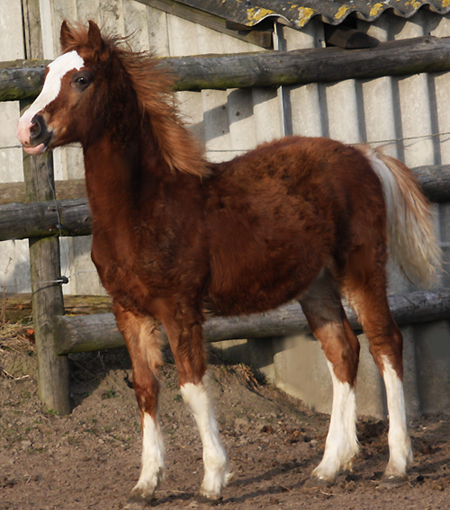 Welsh Cob Hengstfohlen 14.06.2011 Rotfuchs , Blesse, weisse Socken Vater: Dwyfor Scooby Do Mutter: Ilar Hannah v. Nebo Daniel