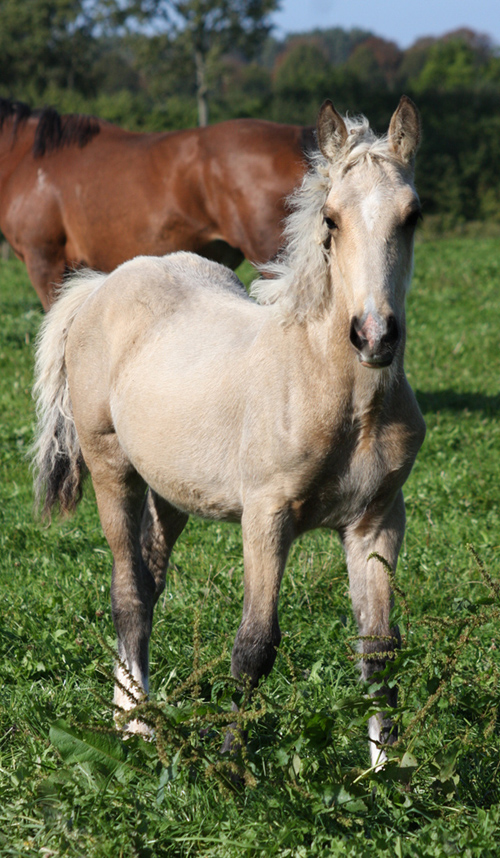 Welsh Cob Hengstfohlen geb. 06.05.2014 Silberfalbe mit Silberhaar , 4 x weiße Socken , Blesse Vater: AC Cream Boy v. Thorneyside Cream Boy Mutter: Jayline Pandora v. Nebo Daniel