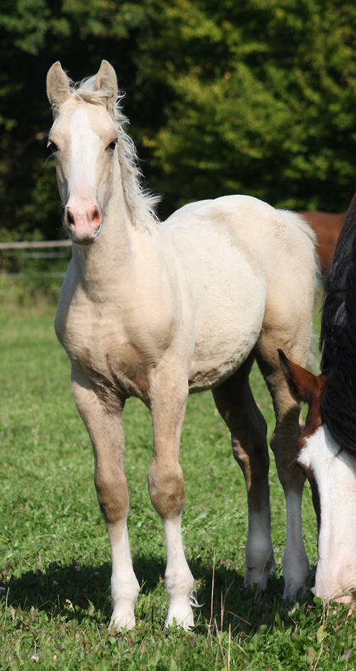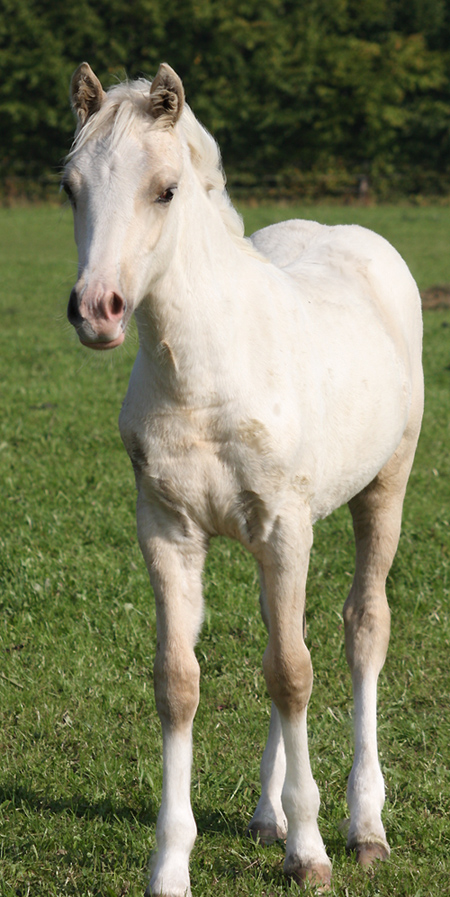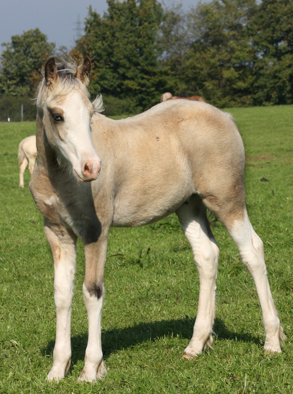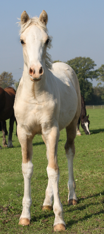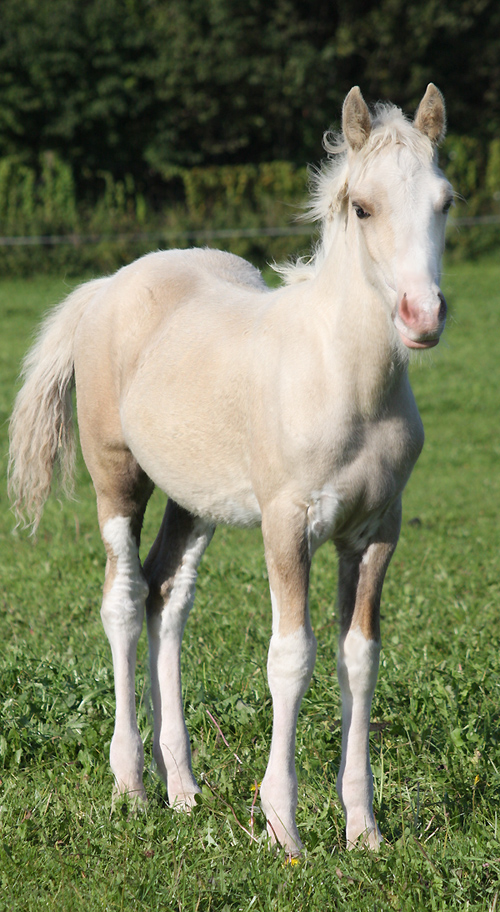 Welsh Cob Stutfohlen geb. 23.05.2014 Cremello, Stern, 4 weisse Socken Vater: AC Cream Boy v. Thorneyside Cream Boy Mutter Sylter Morning Sun v. Dwyfor Scooby Do