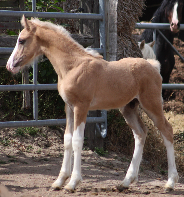 Welsh Cob Hengstfohlen Goldpalomino, Blesse, 4 hohe weisse Stiefel Vater: AC Cream Boy v. Thorneyside Cream Boy Mutter Ilar Loura v. Nebo Daniel