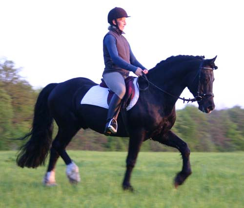 Hier ein Bild von Arvalon Black Trysor von Frau Jana Wölki - er macht sich super unter dem Sattel und ist eine Schönheit.