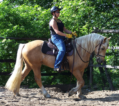 Frau Wallbrecher aus Hemer hat uns nun Fotos von dem bei uns gekauften Palominowallach Paith geschickt - Sie ist sehr zufrieden und wir auch. Er macht sich toll bei der Arbeit . Danke für das schöne Foto