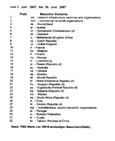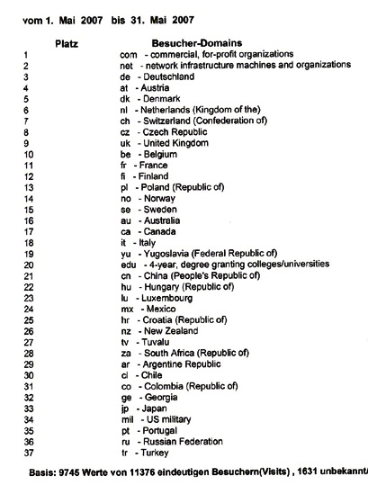 Hier die Hitliste der Besucher aus allen Ländern, die sich über unsere Zucht informieren !!