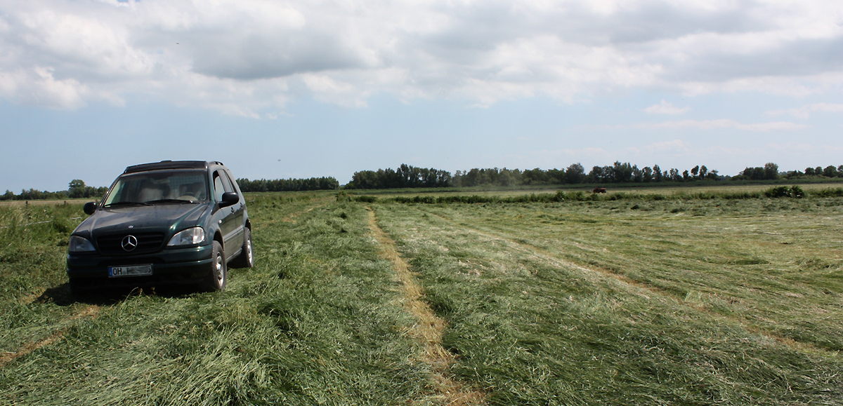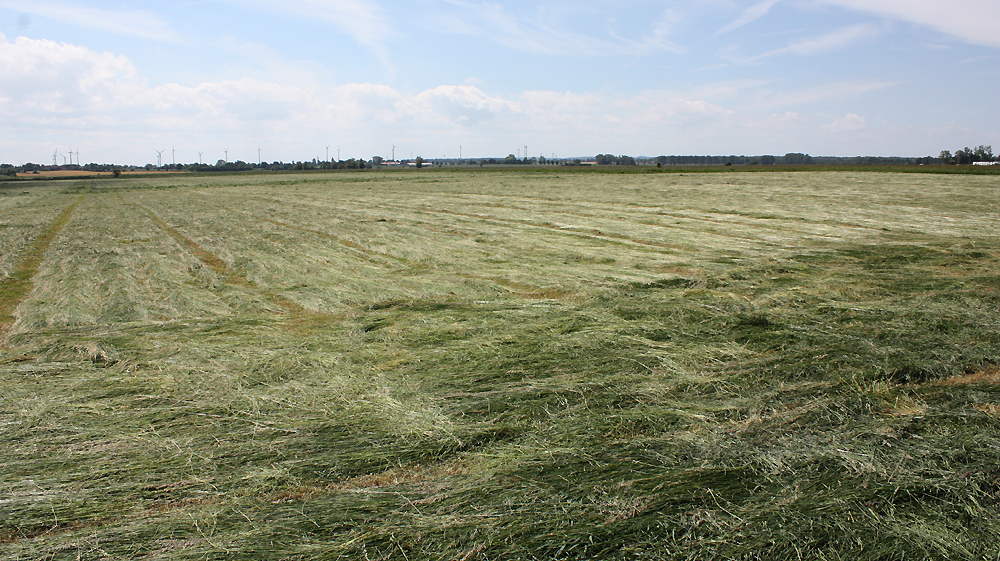 Frisch gemäht - Die Chefin macht Kontrolle der Grasqualität - wir sind zufrieden