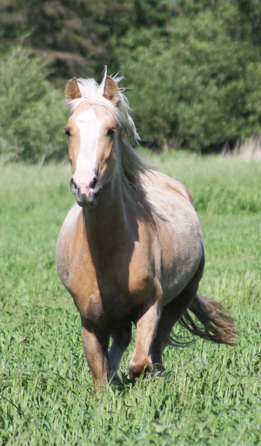 Grüsse von Arvalon Peaches N Cream - auch diese Stute ist schon unter dem Sattel und macht ihre Sache super !