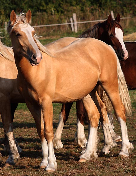 Nun kann jeder sich ein kurzes Bild über unsere Nachzucht und die Qualität der Zuchttiere machen. Die Stuten mit Fohlen auf der Hausweide werden wir bei Gelegenheit ebenfalls neu fotografieren. Viel Spaß beim Stöbern - endlich aktuelle Fotos von den Fohlen der letzten Jahrgänge, die bei uns in die Zucht gehen. Wir haben sicher einzelnde Tiere vergessen oder Sie sind vor der Kamera geflohen - nicht jeder will oder soll ins Netz - ein paar Geheimnisse haben natürlich auch wir auf Arvalon.