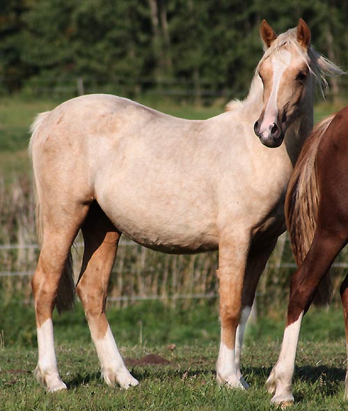 Arvalon Miss Marvellous aus 2008 - Jährlings C Stutfohlen Arvalon Ricadonna aus 2008 v. Synod Roxbury ist zum Goldpalomino durchgehaart wie Mama