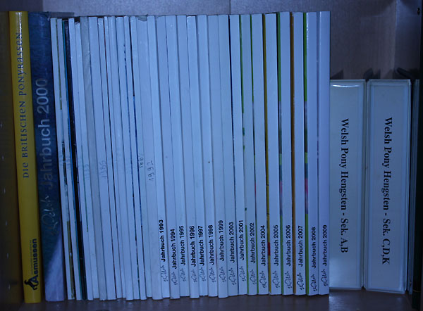 Die Welsh Stutbücher von 1902 bis einschließlich 2021 , sowie die Indexbücher . Stutbücher ab 2022 werden erst gedruckt - die Society arbeitet etwas Zeitversetzt.