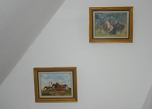 In der Wohnung befinden sich echte Oelgemälde und Kunstdrucke, hochwertige ledergebundene Buecher und Statuen.