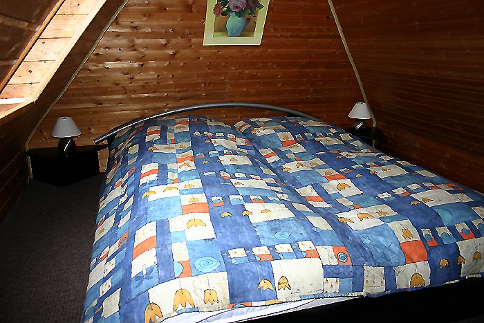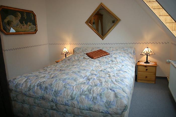 Das 2 . Schlafzimmer/ Gästezimmer in der Dachspitze mit Doppelbett